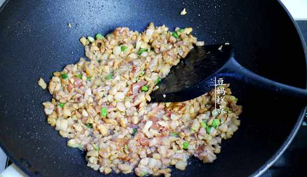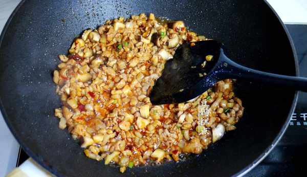 8、翻炒至肉末上色。