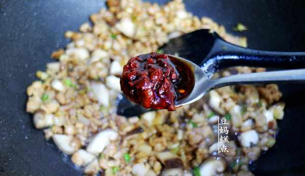 7、加入大半勺豆瓣醬。