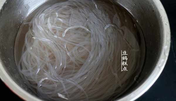 1、紅薯粉條提前清洗幹凈後,放入盆中浸泡變軟。