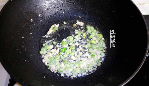 4、鍋裡燒熱油,放入蒜粒、蔥末炒香。