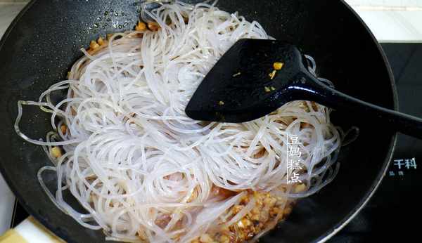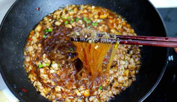 9、加入粉條一起翻炒均勻。