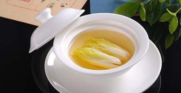 雖然選材普通,但開水白菜的用料還是很講究的,用的白菜一定是一顆白菜中最裡面的最嫩的菜心,自帶一種清新的甜味。