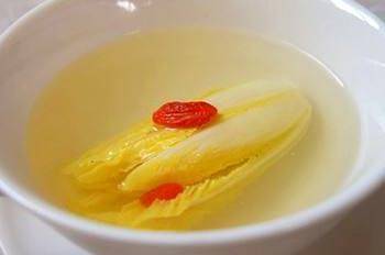制作方法這麼復雜,而且材料這麼多,那麼這道菜的口味肯定超級棒瞭,而且這種雞湯非常的清澈,吃起來一點都不油膩,並且非常的鮮美,而且這種白菜也並不是一般的普通白菜,隻是用白菜裡面的菜心,然後焯過水之後瀝幹水,然後用雞湯燙熟這樣非常美味的開水白菜就做好瞭。
