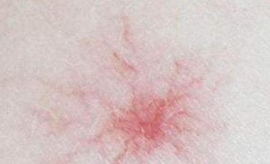 3,蜘蛛痣:蜘蛛痣多出現肝炎患者的身上,多與體內雌激素代謝有關,大量的雌激素會刺激身體毛細血管,導致皮膚小動脈擴張,出現蜘蛛痣。