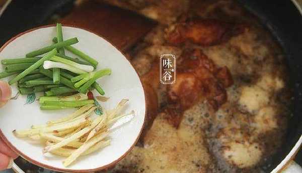 6、放入蔥段和薑絲;