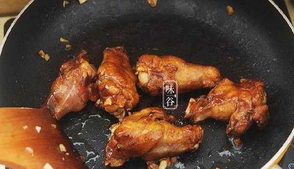 3、蒜瓣去皮切末,熱油下鍋爆香,將醃好的雞翅根下鍋一起大火翻炒2分鐘;