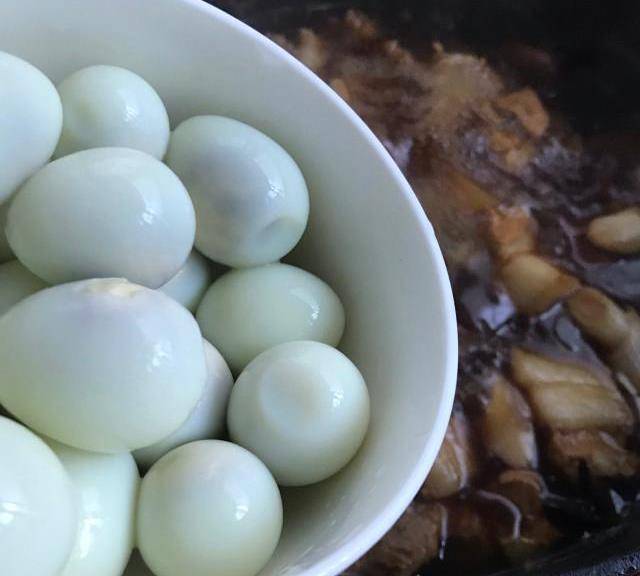 第11步、肉八成熟放入鵪鶉蛋同煮。