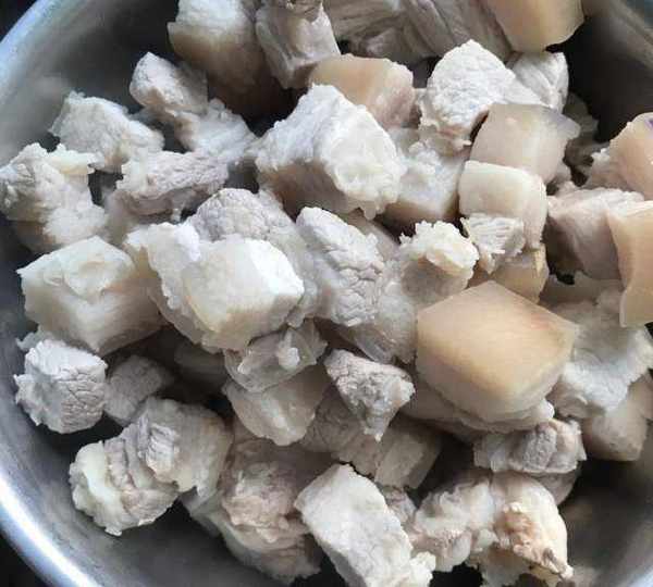 第5步、五花肉加料酒,花椒焯水撈出瀝幹水分備用。
