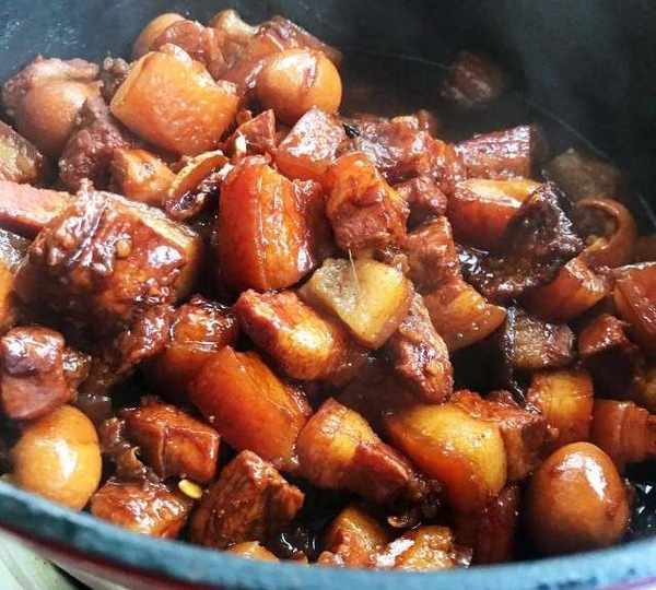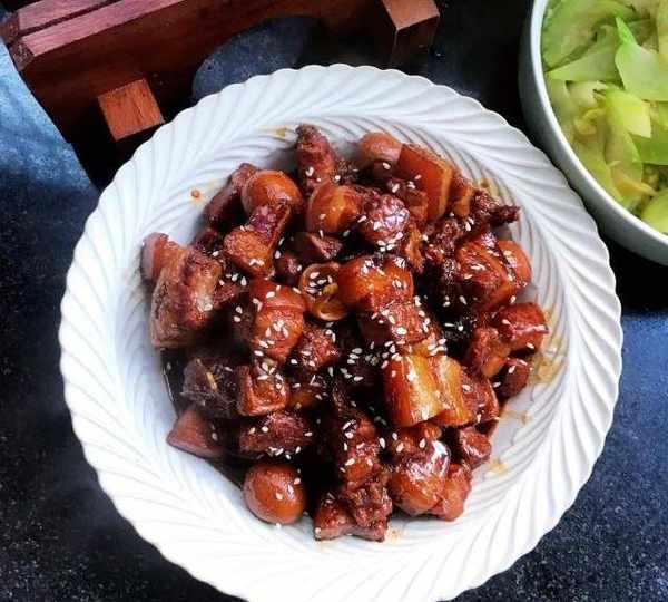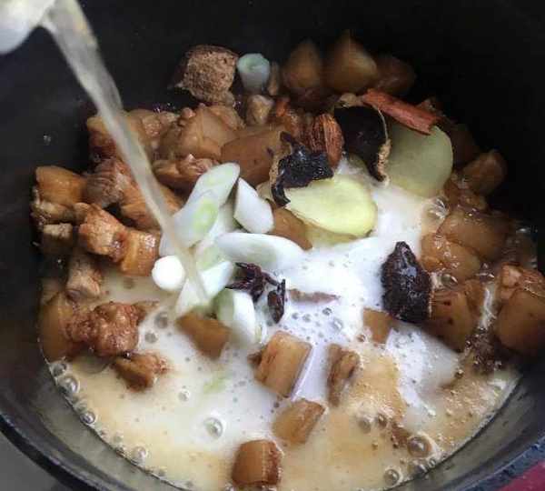 原料:五花肉、啤酒、鵪鶉蛋、陳皮、蔥、薑、八角、草果、花椒、桂皮、油、鹽、料酒、冰糖、老抽、醬油、溫水、芝麻。