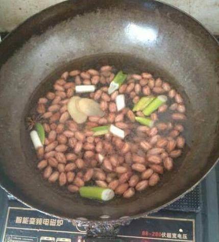 現在介紹做法,先煮花生米,放好蔥,薑,十三香,八角,多放些鹽(容易入味),加入適量水,煮熟浸泡