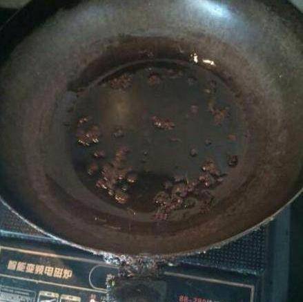 鍋裡放油,油熱後放入花椒,關火