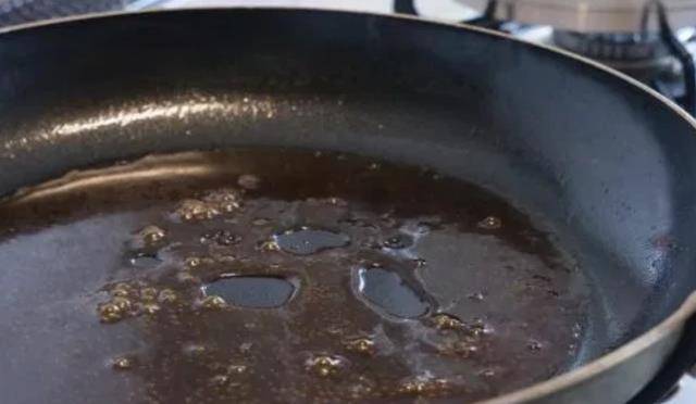 5.將涼拌醬汁材料全數放入煎鍋內,並加熱至糖溶解,醬汁呈現亮色膏狀後熄火