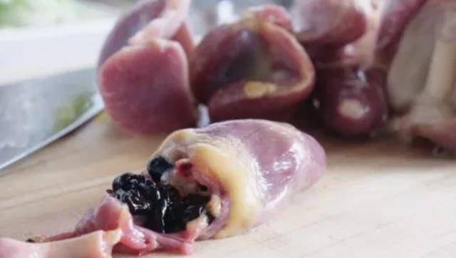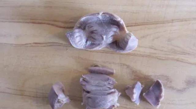 2.備料二:雞胗是雞的砂囊,買來時已切開不需再處理,雞心內部通常有殘留的血塊,可從上方劃一刀後將血塊擠出(如圖),如果不介意也可保留完整雞心下鍋