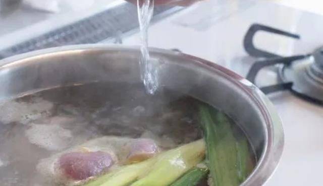 3.起一鍋水加入蔥段、老薑片、八角和米酒,水滾後放入雞胗和雞心,以小火滾煮約20分鐘