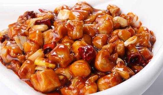 5.加入白糖,米醋,醬油,翻炒勻後加入炸花生米,再炒1分鐘就可以出鍋瞭。