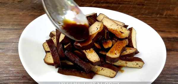 步驟3:將豆幹切成小長條,淋上鹵汁。