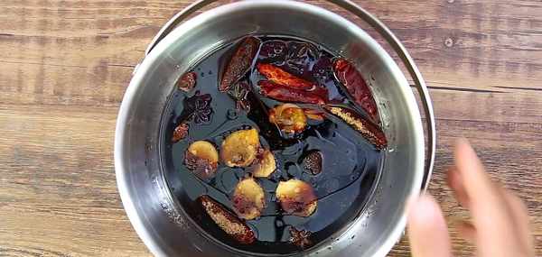 幹辣椒 5克,八角 5克,薑片 15克,油 50ml,醬油 250ml,水 適量,黑糖 50克。