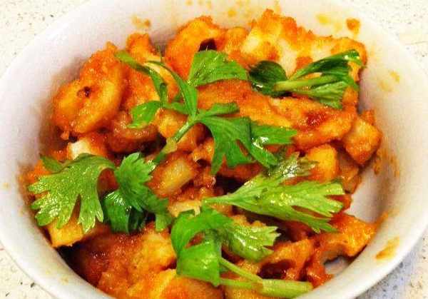 茄汁藕條:蓮藕洗凈,去皮,切成條,撒上幹生粉拌勻。蓮藕最好挑兩頭完好沒有破損的,裡面才幹凈。將蓮藕條放油鍋裡炸至表層變脆,油溫不要太高。另外熱鍋,倒入番茄醬約3~4湯勺,加入少量白醋、白糖、水,翻炒,嘗嘗酸甜度是否合口味後加入菜椒,並用少許水淀粉勾芡成糊狀。最後將炸好的蓮藕要倒入鍋中,轉大火,快速炒勻。洗摘適量芹菜,點綴之後更漂亮哦。