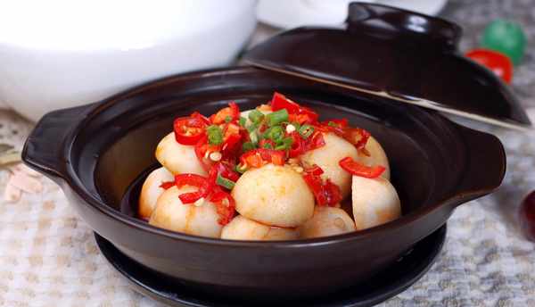 主料:芋頭400克。調料:食鹽4克、蔥5克、生抽5克、剁椒50克、植物油少許。做法:芋仔去皮洗幹凈,在去皮芋仔上,鋪上剁椒上鍋隔水蒸,澆上燒熱的油就好瞭。