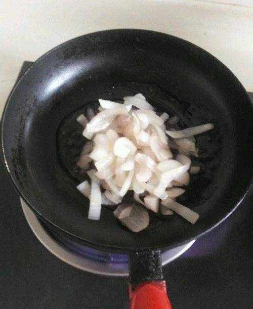 第二步就是要加入洋蔥絲,這個時候要把火調成中火。待洋蔥在油鍋中滿滿變軟後,香味出來瞭就可以進行下一步瞭。