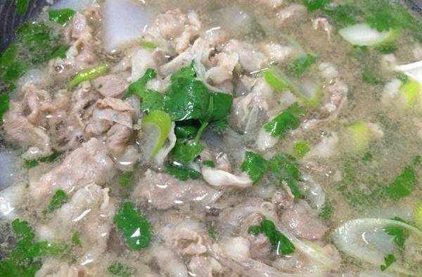 6、再放入羊肉片煮熟,燙熟就可以瞭,千萬不要煮的太老瞭。