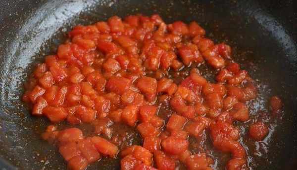 準備好這個之後,我們就可以把,西紅柿去皮切成小顆粒,到時候再把我們準備好的青菜焯水幾秒撈出切碎;我們也要把我們準備的蔥切碎,到時候我們就可以往鍋裡面倒入適量的油,我們就可以一把抓住那個西紅柿倒入鍋中,西紅柿炒出像圖片中這麼這個樣子的時候,就可以往鍋中加入期間加入鹽,到時候就可以往西紅柿裡面加入2勺生抽,在冬天特別適合做這樣的早餐,不僅營養還美味,百吃不厭。