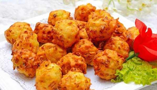 7、等看到丸子在鍋中被炸成金黃色瞭,就差不多瞭,這個時候我們就可以把它們撈出來,然後控控油。