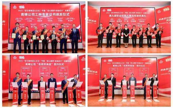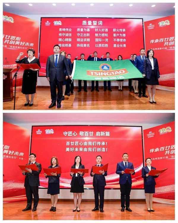 當天活動,具有120年歷史的青島啤酒廠,麥香氤氳、匠心傳承、誓言鏗鏘。青島啤酒公司黨委書記、董事長黃克興,黨委副書記、總裁薑宗祥分別做主題講話,員工代表通過《守匠心敬百廿啟新篇》主題朗誦、質量誓詞宣誓等儀式進一步凝聚質量強企共識;青島啤酒還同步啟動2023“百廿青啤匠心文化”節暨“匠心圓夢技能成才”主題活動,對支撐質量發展的技能人才進行表彰並聘任技能專傢,舉行“名師帶高徒”簽約儀式,為質量強企提供不竭動力;會上,“讓愛新鮮常伴”青島啤酒原漿嘗鮮季也正式啟動,讓消費者從魅力感知質量的代表產品中,零距離感受百廿青啤的匠心傳承和魅力質量。