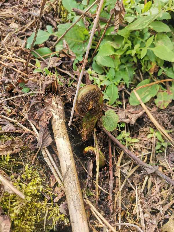剛剛露頭的蕨菜,長這個樣子,當然瞭。吃蕨菜,盡量吃做熟的蕨菜比較好,因為生蕨菜中,含有一種叫做原蕨苷的致病物質。