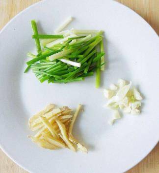 5.西紅柿洗幹凈,切小塊,薑片切絲,蒜切小塊,蔥切成蔥花。