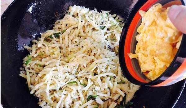 然後把炒熟的雞蛋倒入鍋中