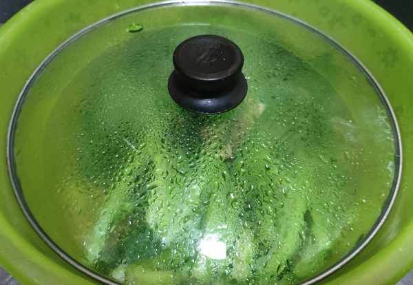 小貼士:水溫、水溫、水溫,重要的事情說三次,水溫過高就直接燙熟瞭。加蓋燜的時間可以適當延長,隻是太久的話芥菜會變色。