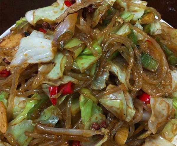 包菜炒珍珠粉,他們告訴我這些珍珠粉都是他們從傢鄉帶回來的,看起來和我們平時吃的米粉差別不大,味道完全不一樣,口感很軟很粘因為又清爽又好吃,所以用嘴輕輕地吸瞭一下就完成瞭,再加上松脆的包菜,我一個人吃瞭大半碗。