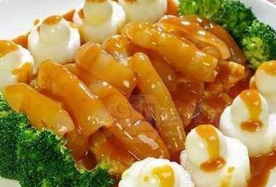 配料:魚唇120克、雞胸脯肉100克、火腿30克、油菜5克、雞蛋清25克、淀粉(蠶豆)15克、鹽4克、味精3克、小蔥10克、薑汁5克、雞油10克、黃酒5克、豬油(煉制)40克