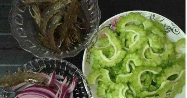 鮮蝦苦瓜洋蔥薑片料酒淀粉