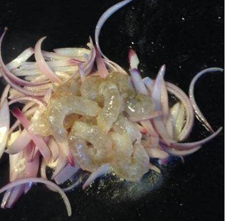蝦仁用鹽和薑片,料酒,和淀粉抓勻醃制