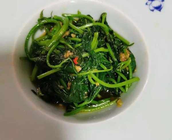 食材:紅薯葉、大蒜、幹辣椒、食鹽、食用油。
