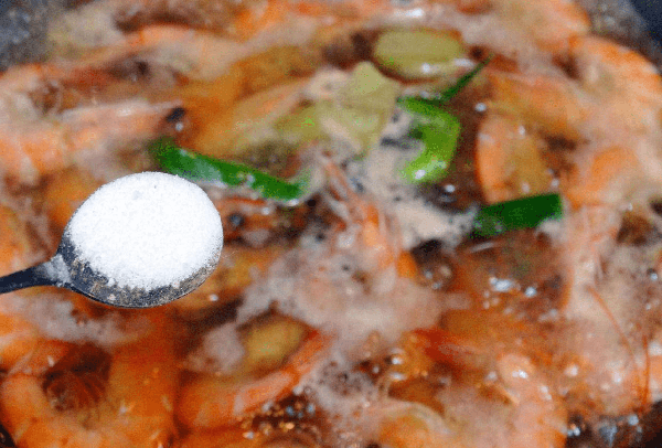 3.第二次煮蝦要水開放鹽,放早瞭會煮出很多浮沫。