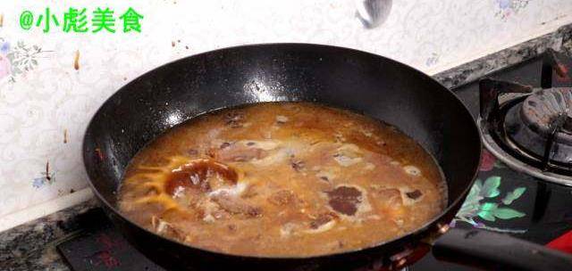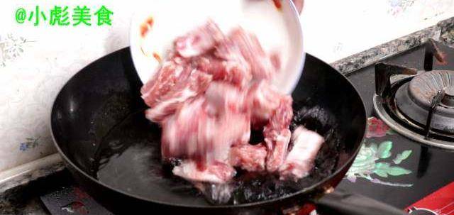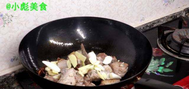 10、炒香之後。倒入少許水、水沒過排骨就可以。