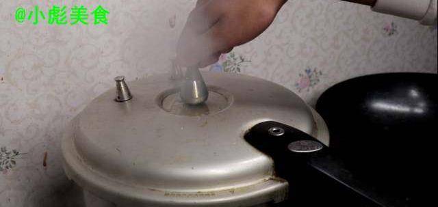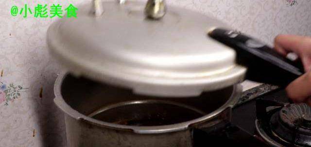 12、開鍋之後倒入高壓鍋中、上汽之後、改成小火、用小火燉10分鐘就可以。