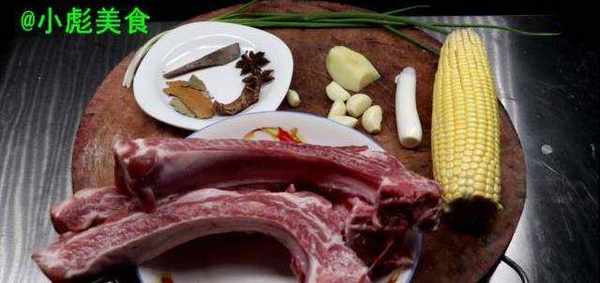原料:排骨、玉米、蔥薑蒜、八角、桂皮、香葉、良薑