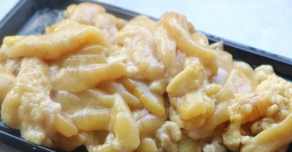 4、將黃花魚子肉自然解凍後,沖洗,並吸收其表面的濕氣。