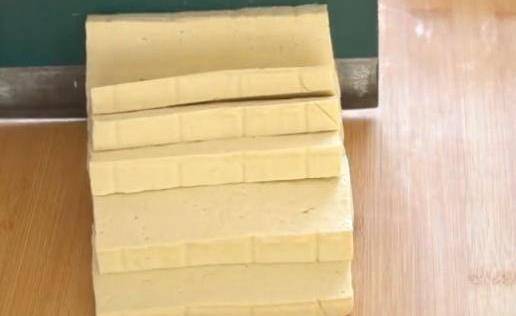 嫩豆腐1塊,先切成方塊,再切成丁。
