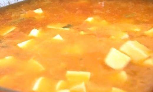 再把切好的豆腐也倒入,再根據自己的口味加入鹽。