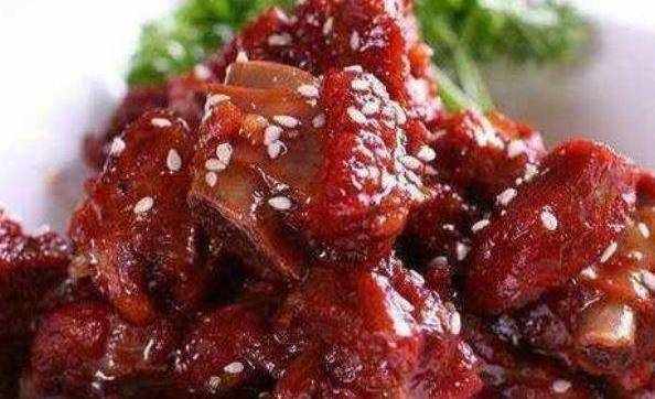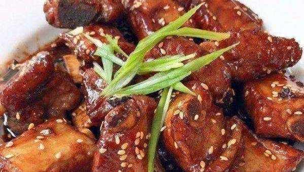 材料:排骨、料酒、生薑、冰糖、生榨、醬油、白醋、鹽、雞精、白芝麻、油