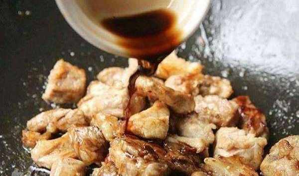 2.鍋裡放油,用冰糖炒油,用糖色炒排骨,加入醬油、醬油、白醋、鹽,攪拌均勻。加些水,避免水通過肋骨。