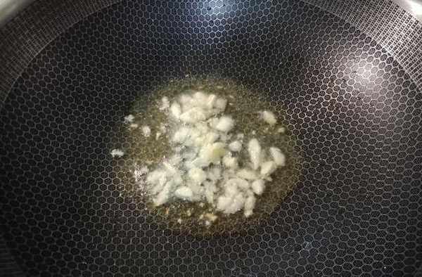 4.起鍋燒熱油,加入大蒜末爆炒出香味。