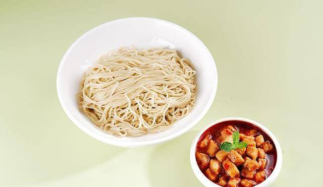 選用帶堿粗細適中的面條開水下鍋,煮熟撈出,過涼水過水的面條抖散,加點熟油拌勻防止粘連,放在碗裡加上保鮮膜防止風幹,隨取隨用。註意:煮面的時候,要大火,鍋裡的水要充足。