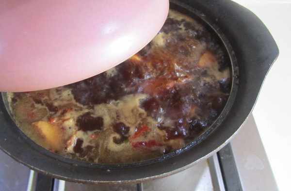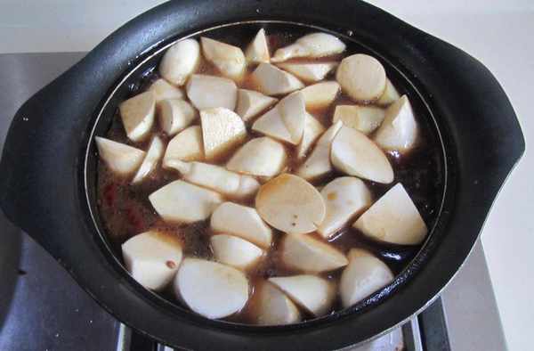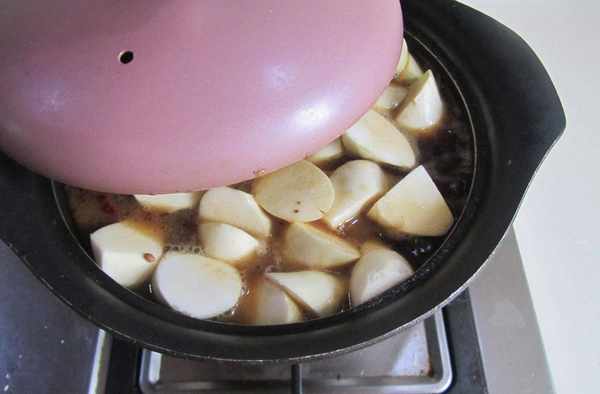 8.加入適量的水,煮開後轉為小火加蓋燉煮15分鐘;
