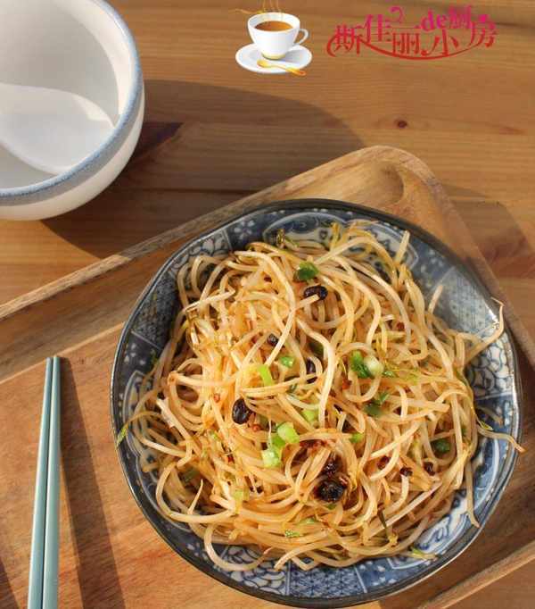 原料: 綠豆芽 香辣豆豉醬 蔥花 油鹽